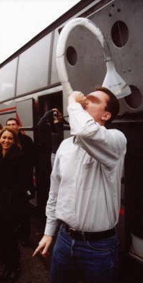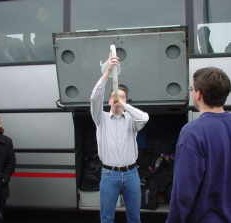 Morgens halb zehn in Holland: Einfach mal aus dem Bus aussteigen und einen Schlauch trinken. Eine gewisse Begeisterung unseres Kutschers Carlo darf man an dieser Stelle nicht verleugnen!